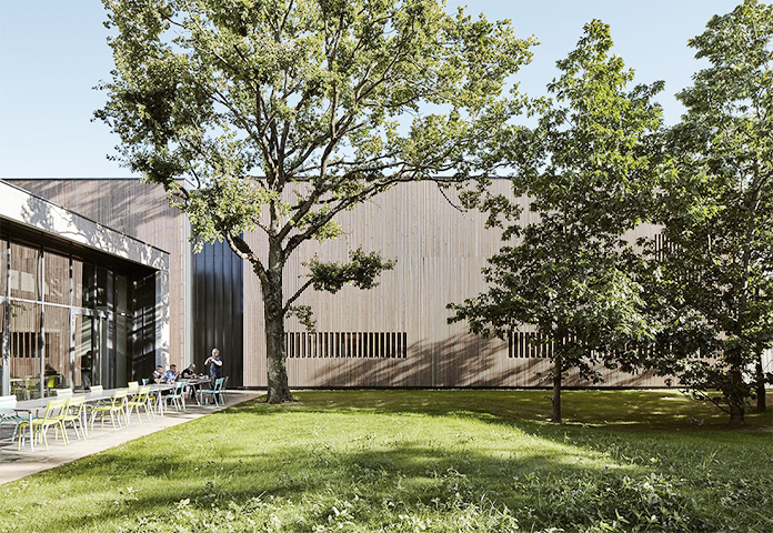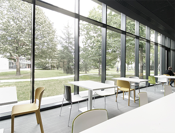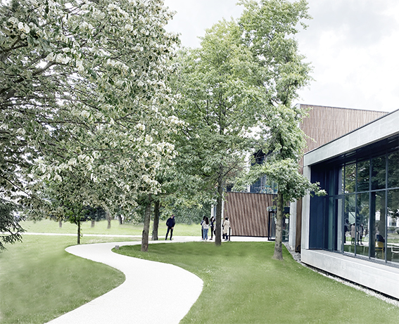 Une nouvelle cafétéria s’implante au coeur du campus, au milieu du parc, en préservant au maximum les arbres existants.