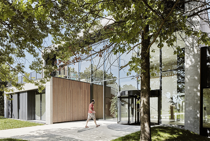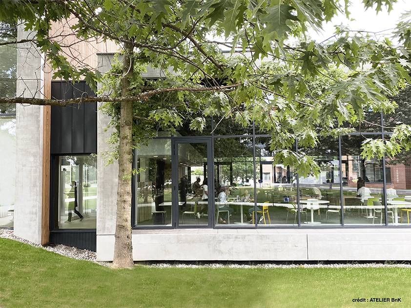 Une nouvelle cafétéria s’implante au coeur du campus, au milieu du parc, en préservant au maximum les arbres existants.